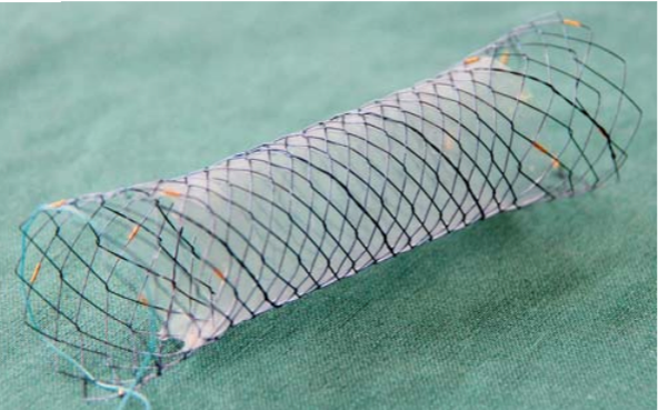 In this study, they conclude that metal stent grafts can be used as an alternative treatment for perforated duodenal ulcer in patients with advanced age, comorbidities, late diagnosis or difficulties in primary closure of the defect. Simultaneous drainage of the abdominal cavity at the site of the leak appears to be crucial in most cases. Stent treatment together with percutaneous drainage may even be a future alternative to surgery in all patients with perforated duodenal ulcers. They describe the removal of the stent after 30 days.