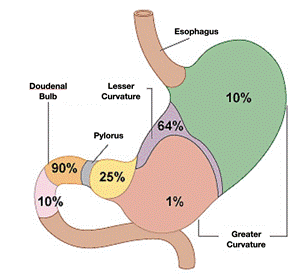 Duodenal ulcer is the predominant lesion in the Western population, whereas gastric ulcers are more common in Eastern countries, with the latter having a higher morbidity and mortality.