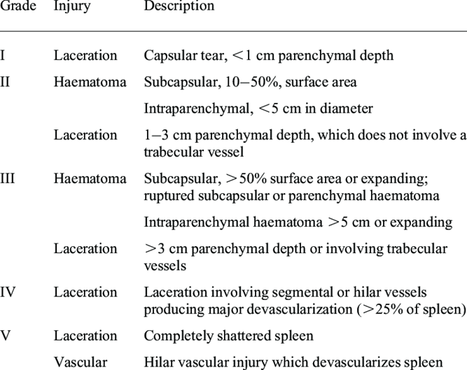 2. Coccolini F, et al. Splenic trauma: WSES classification and guidelines for adult and pediatric patients. World J Emerg Surg 2017;18:12:40.
