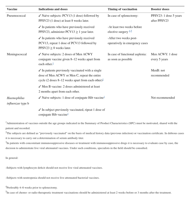 7. Bonanni P, et al. Recommended vaccinations for asplenic and hyposplenic adult patients. Hum Vaccin Immunother 2017;13:359-68.